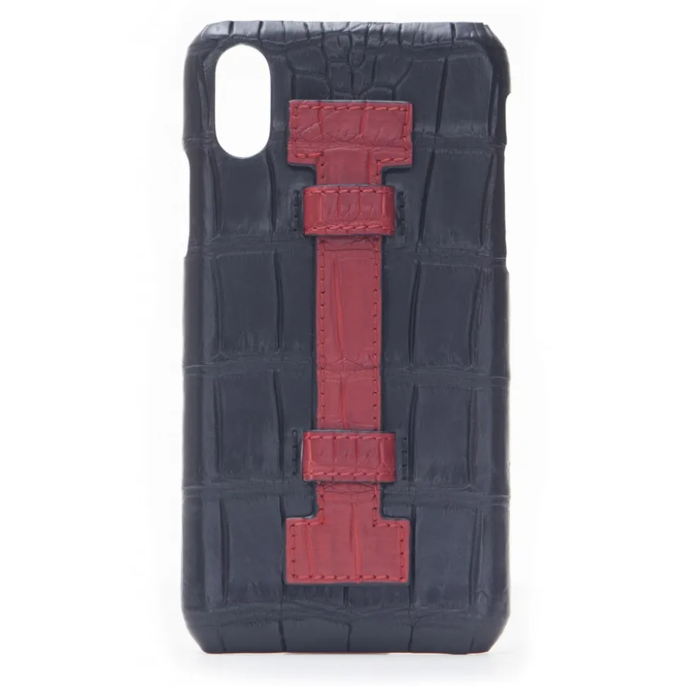 Handmade iPhone Case with finger handle realized with the best Italian crocodile leathers.