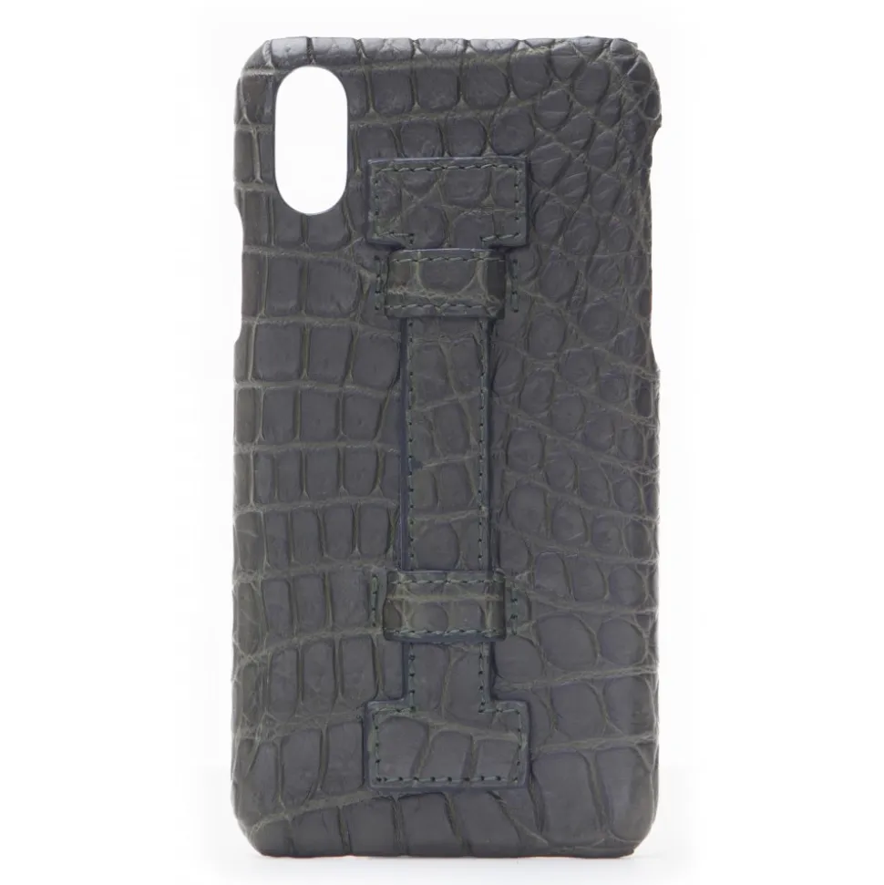 Handmade iPhone Case with finger handle realized with the best Italian crocodile leathers.