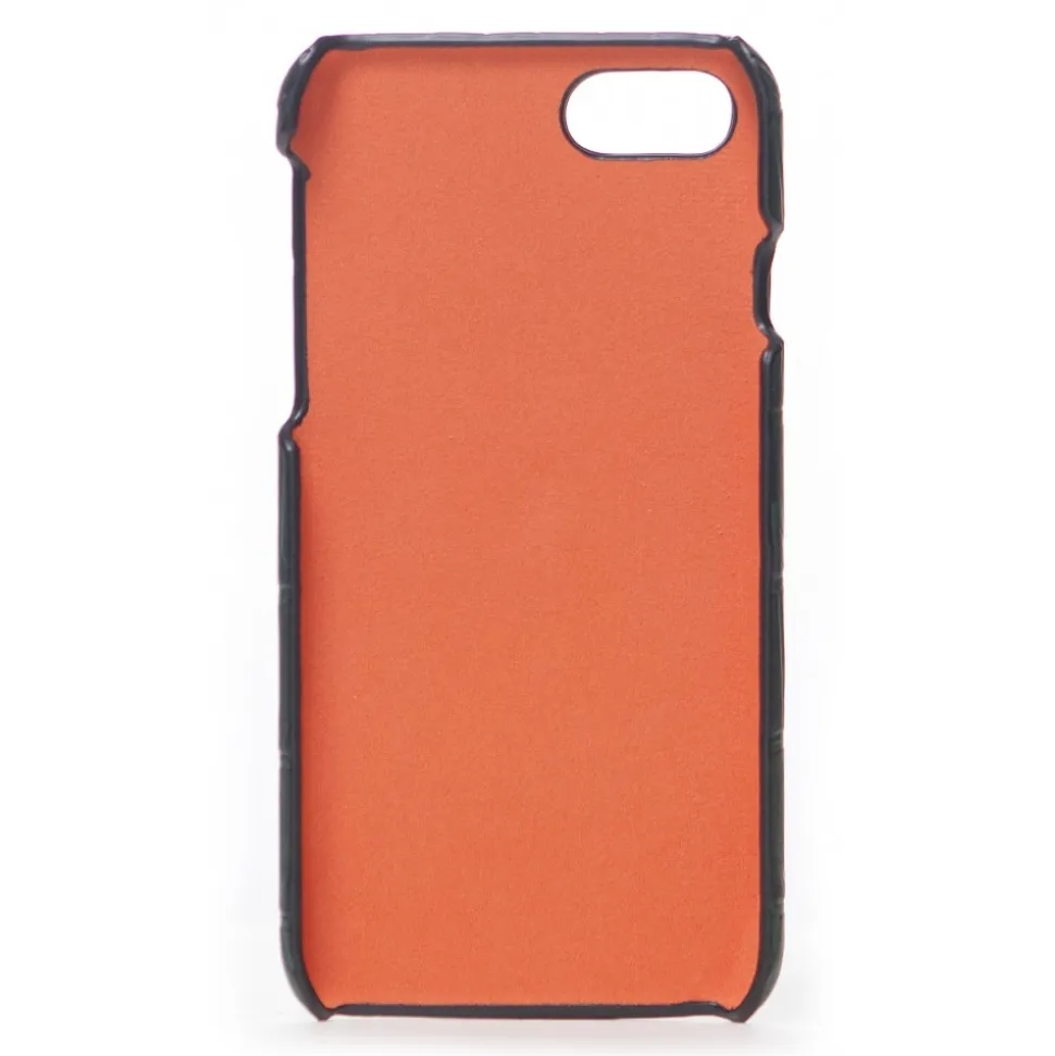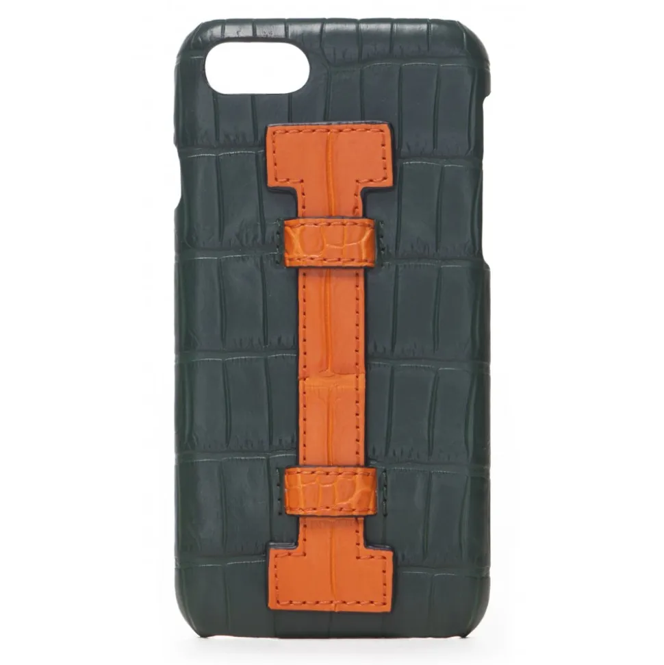 Handmade iPhone Case with finger handle realized with the best Italian crocodile leathers.