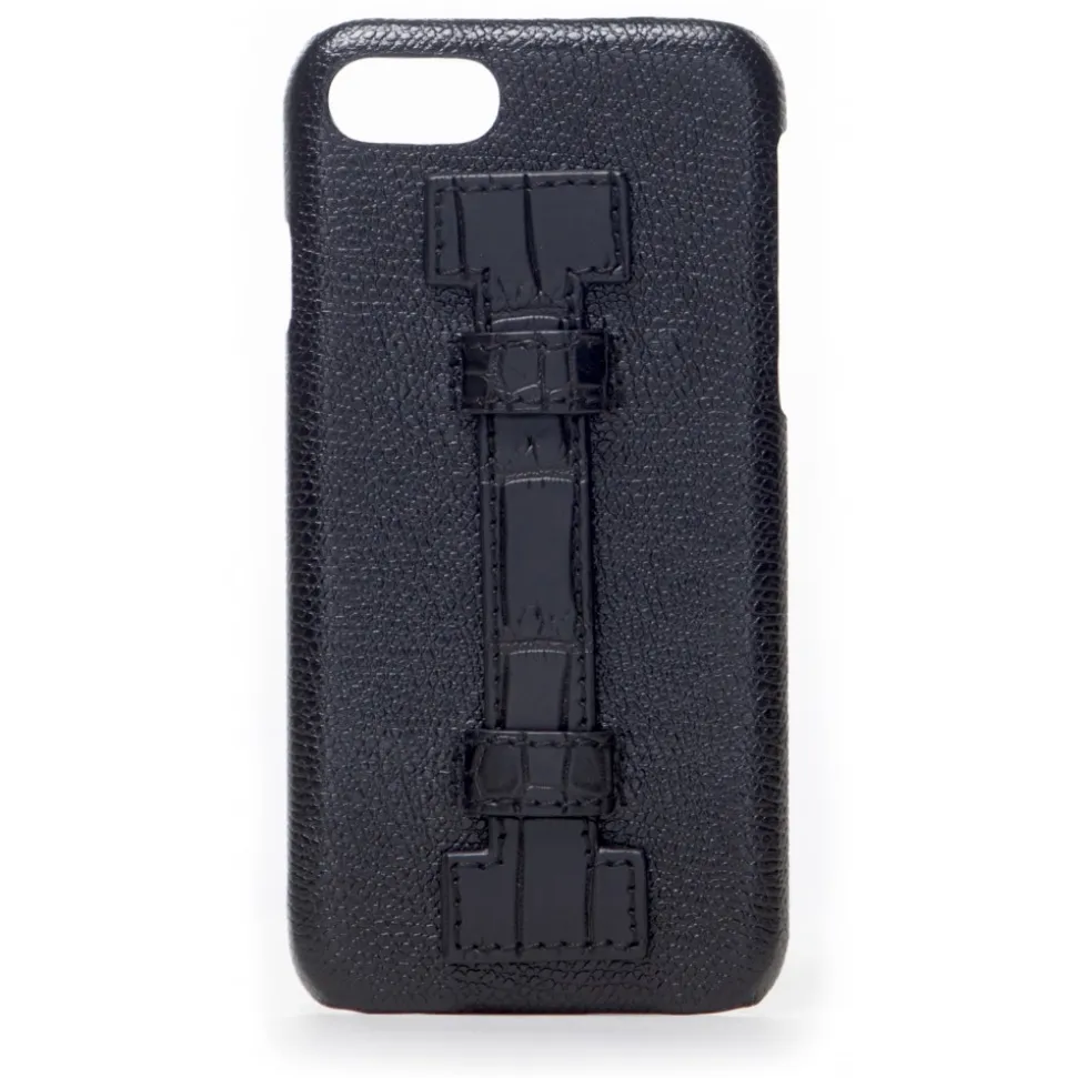 Handmade iPhone Case with finger handle in crocodile leather realized with the best Italian leathers.