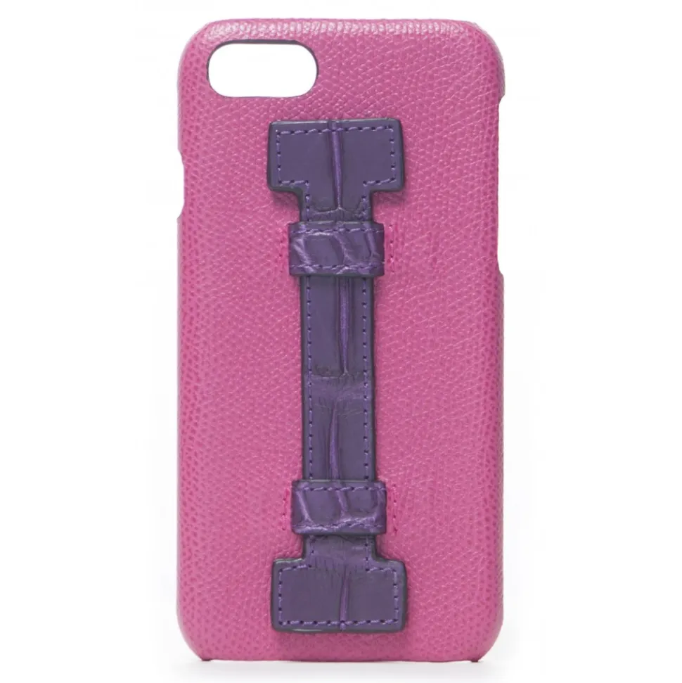 Handmade iPhone Case with finger handle in crocodile leather realized with the best Italian leathers.