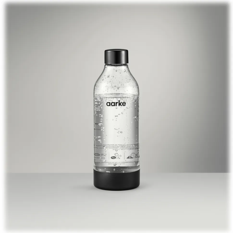 The Aarke water bottle is made of PET plastic. Due to rigorous safety requirements it is impossible to use a glass bottle together with any open sparkling water machine. Since our goal always have been to make the slimmest and most compact sparkling water maker in the market, we made the decision not to use a glass bottle. A glass bottle would require a bulky ”explosion proof” chamber incorporated in the machine design.