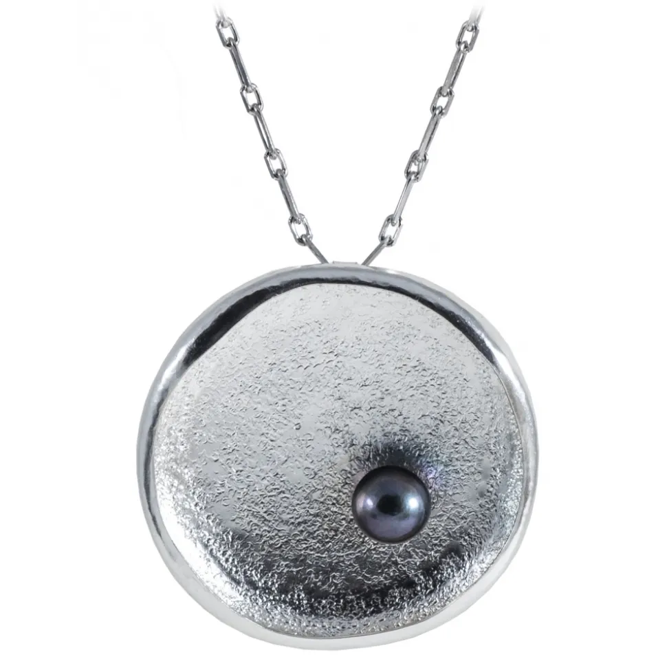 Ab Ove – Round Flat Little Pendant in Silver with River Pearl – Venus Collection – Handcrafted Necklace – High Quality Luxury