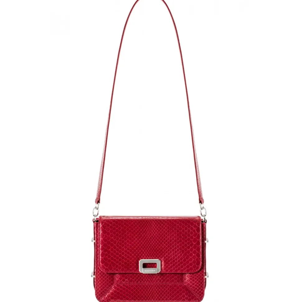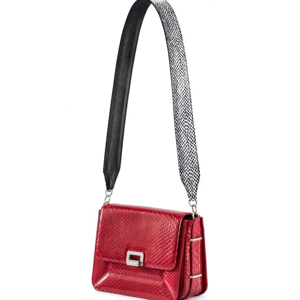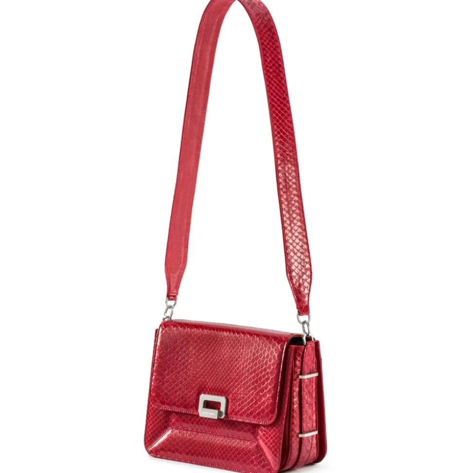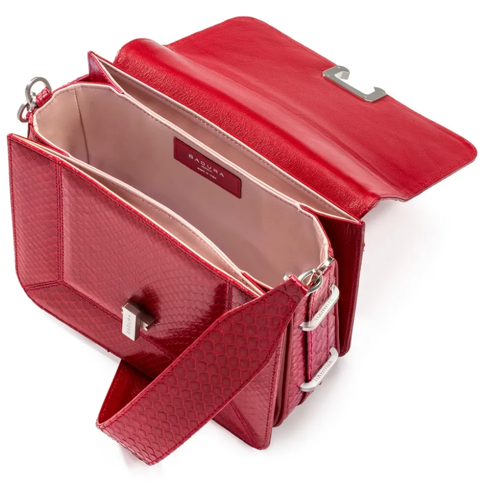 The smooth calfskin and python leather of this BADURA icon blend harmoniously. This bigger version of the iconic CANDY shoulder bag is the ultimate combination of simplicity and style to last a lifetime. CANDY LARGE boasts a roomy interior to fit all of the daily essentials. The polished palladium hardware and latch drapes perfects over any outfit to create an essential piece in your wardrobe.
