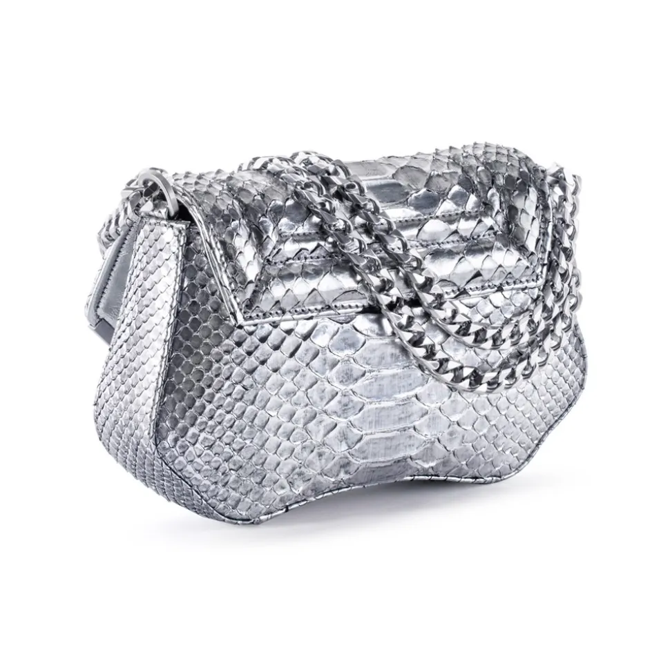 A smaller version of our ETOILE. Perfect for special occasions or making an fashionable entrance, this timeless piece exudes elegance from every detail. Adorned with a gold, double chain strap, this one-of-a-kind accessory drapes beautifully over your shoulder or wear it as a clutch. With its unique shape and sleek characteristics the ETOILE MINI will be your next wardrobe staple.