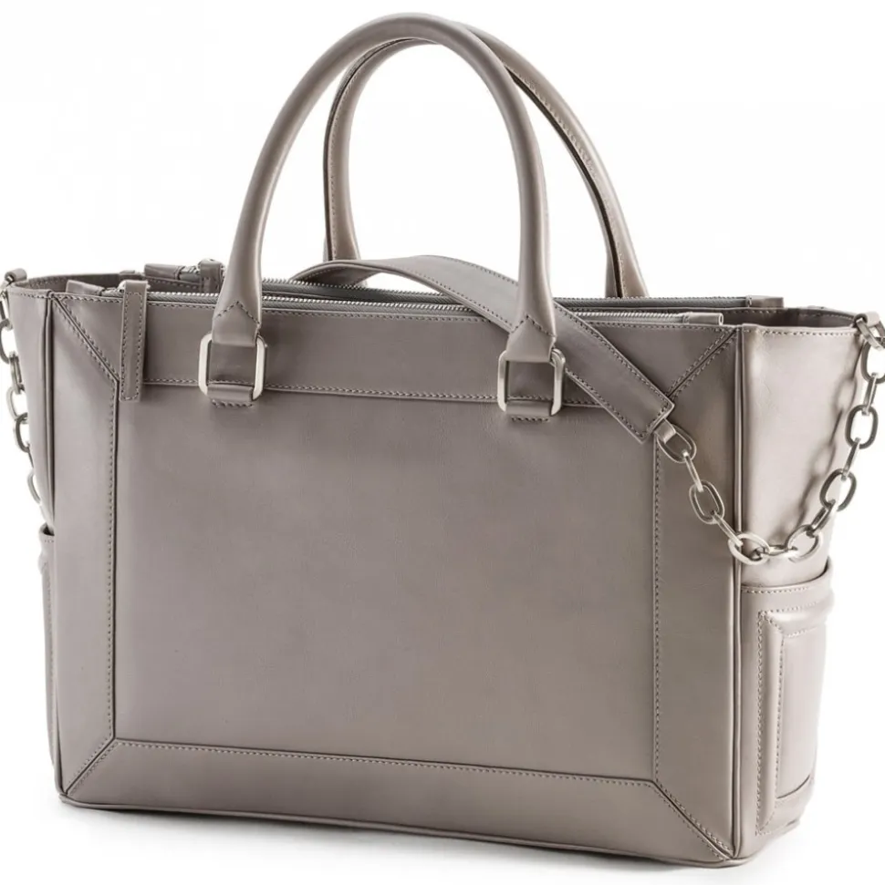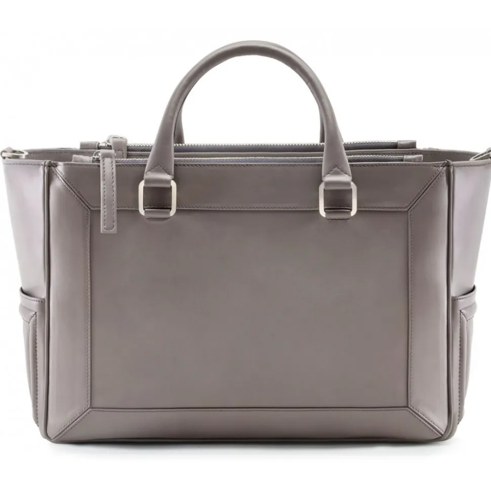 A roomier version from the signature LadyLike collection that combines beauty with incredibly practical features. This LadyLike M boasts a smooth onyx calfskin. Flaunting an even more spacious interior, this style is perfect to carry work documents or weekend items. Featuring a magnetic flap closure and equipped with large side pockets to make sure all of your favorite things are zipped away. Attach the convenient leather and chain strap to wear on the shoulder or cross body for the woman on-the-go.