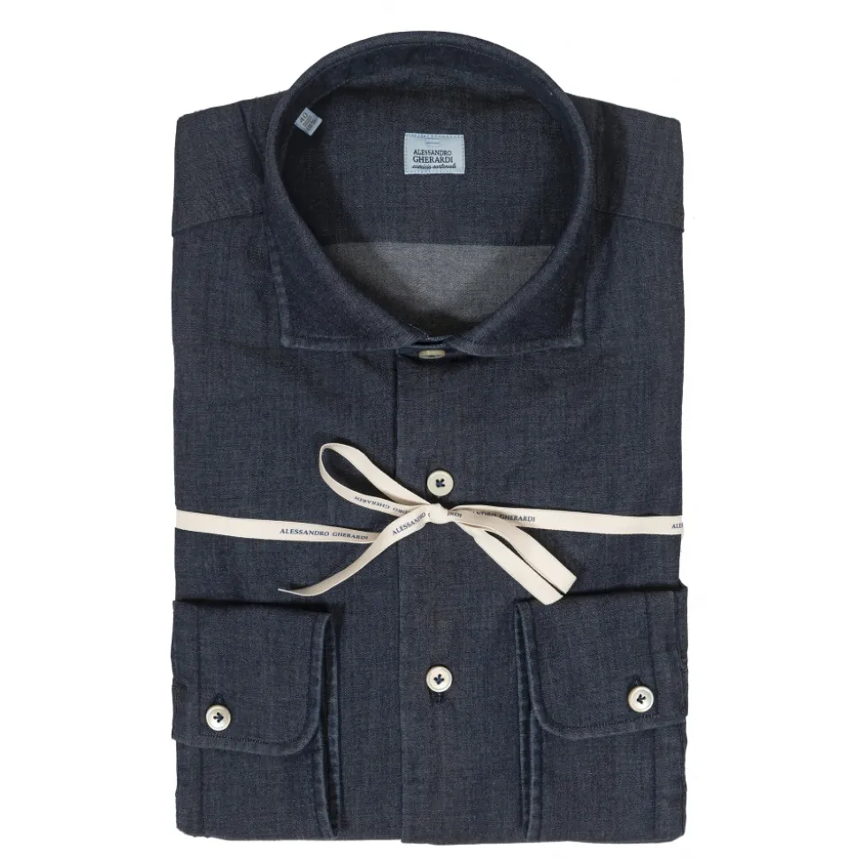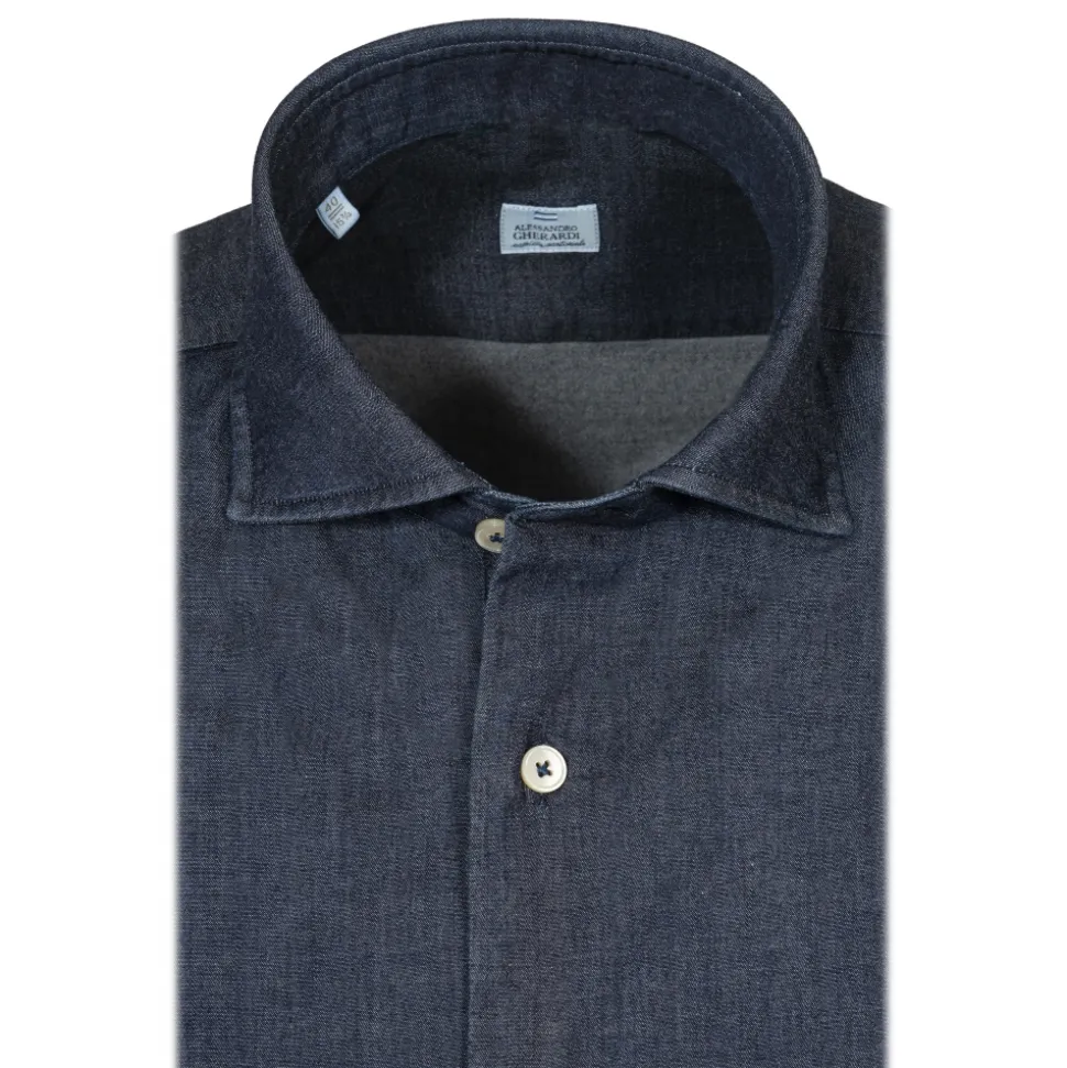 Alessandro Gherardi – Long Sleeve Shirt – Very Dark Denim – Shirt – Handmade in Italy – Luxury Exclusive Collection