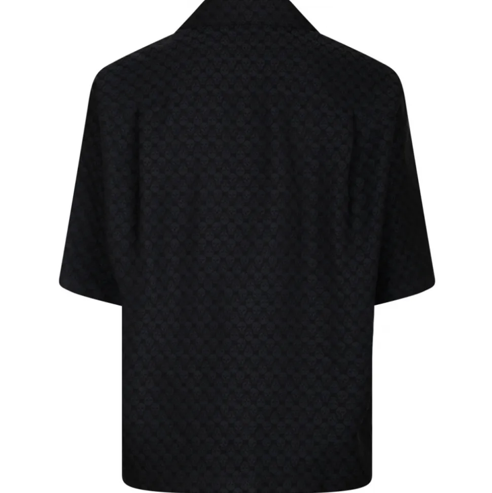 Alexander Mcqueen Black Printed Shirt. Black printed shirt, front button fastening, chest patch pocket, short sleeves.
