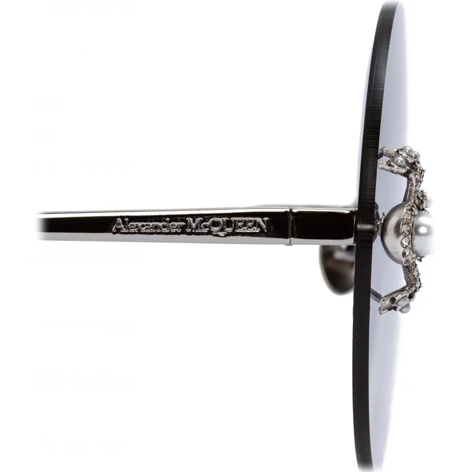 Alexander McQueen – Spider Jeweled Round Sunglasses – Silver Grey – Alexander McQueen Eyewear