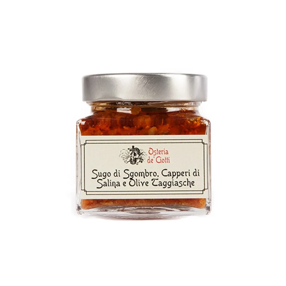 Ingredients: Mackerel (32%), organic tomato (36%),Salina capers (3%), taggiasche olives (6%), red onions (11%), garlic, parsley, oregano, white wine, italian extra virgin olive oil (10%), salt, pepper.
