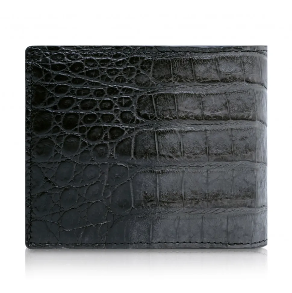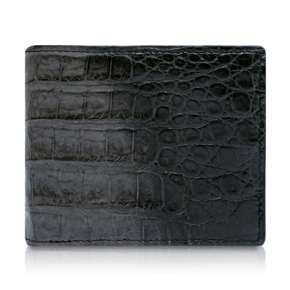 Handmade bifold wallet in caiman leather exterior with cowhide leather lining made in Italy.