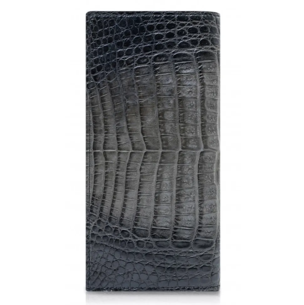 Handmade bifold wallet in caiman and cowhide leather lining made in Italy.