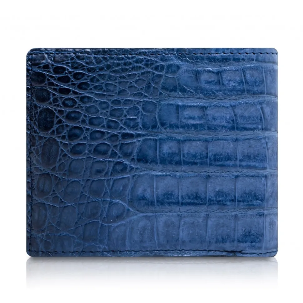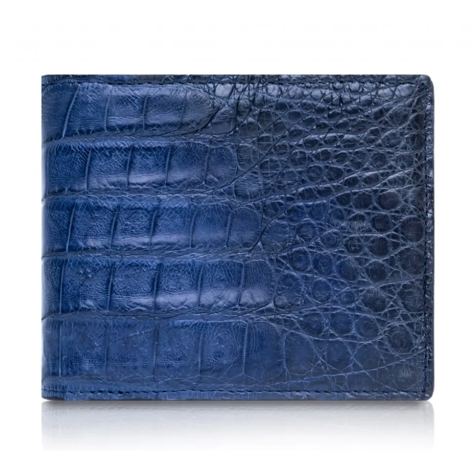 Handmade bifold wallet in caiman leather exterior with cowhide leather lining made in Italy.