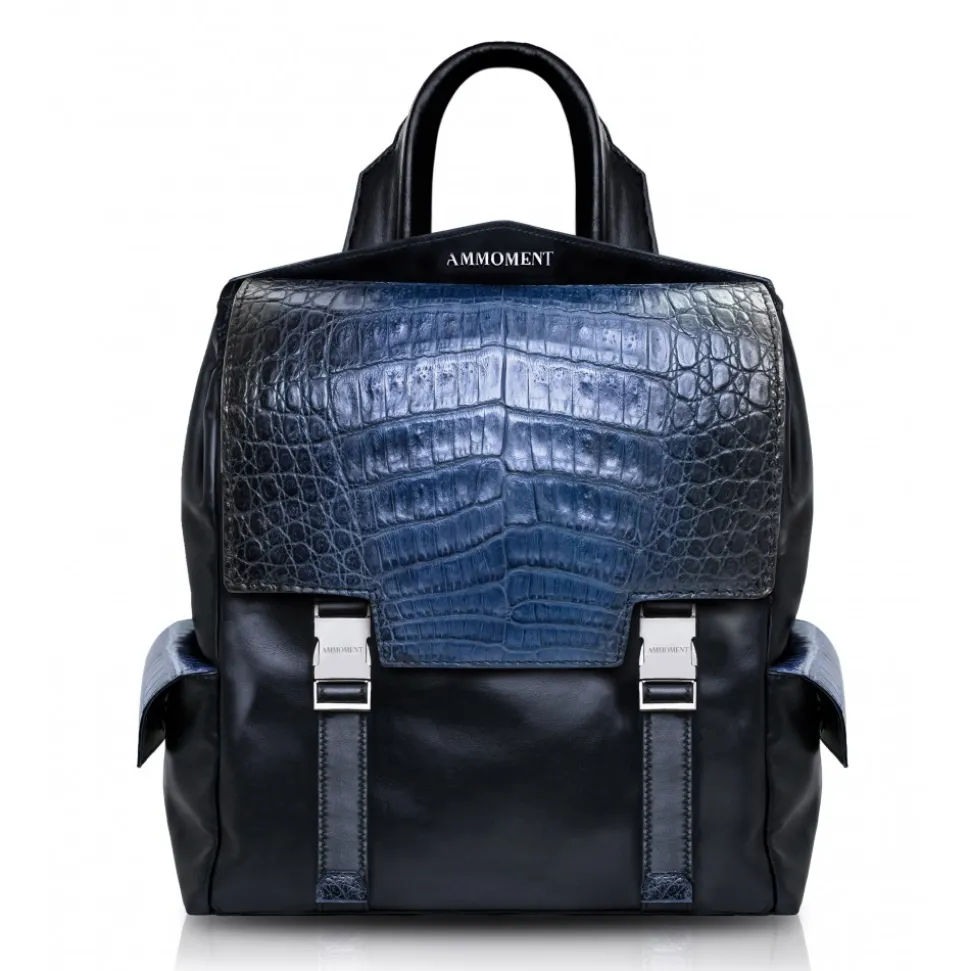 Handmade leather Zane small backpack in caiman and cowhide leather lining made in Italy.