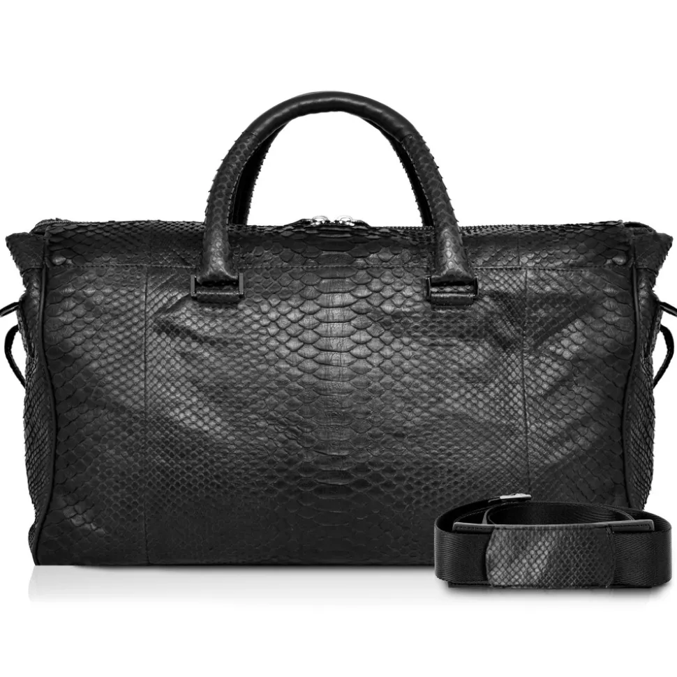 Lark Weekender Large Leather Bag in Python – Black