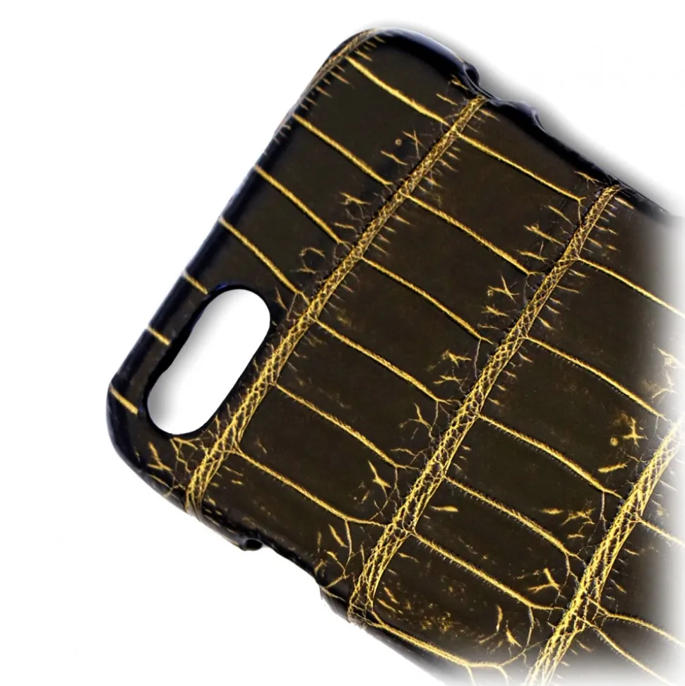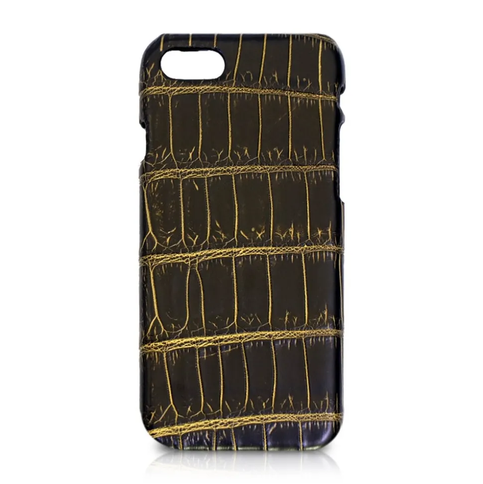 Handmade iPhone cover in Nile crocodile leather made in Italy. The crocodile skin is tinted in gold colour on the rim of the crocodile scale by hand.
