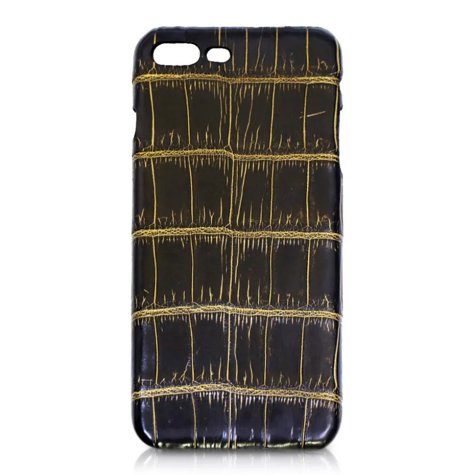 Ammoment - Nile Crocodile in Crack Black and Gold - Leather Cover - iPhone 8 Plus / 7 Plus - Avvenice