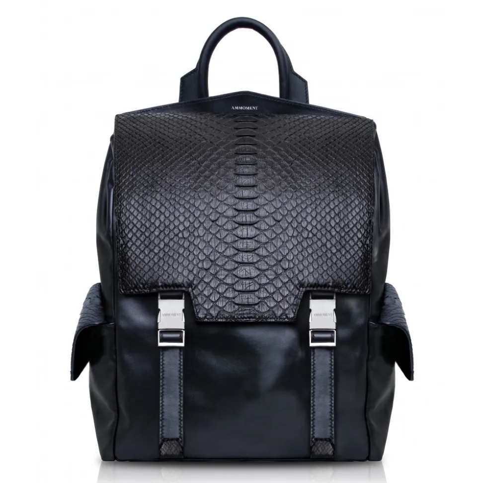 Ammoment – Python in Black – Leather Zane Large Backpack – Avvenice