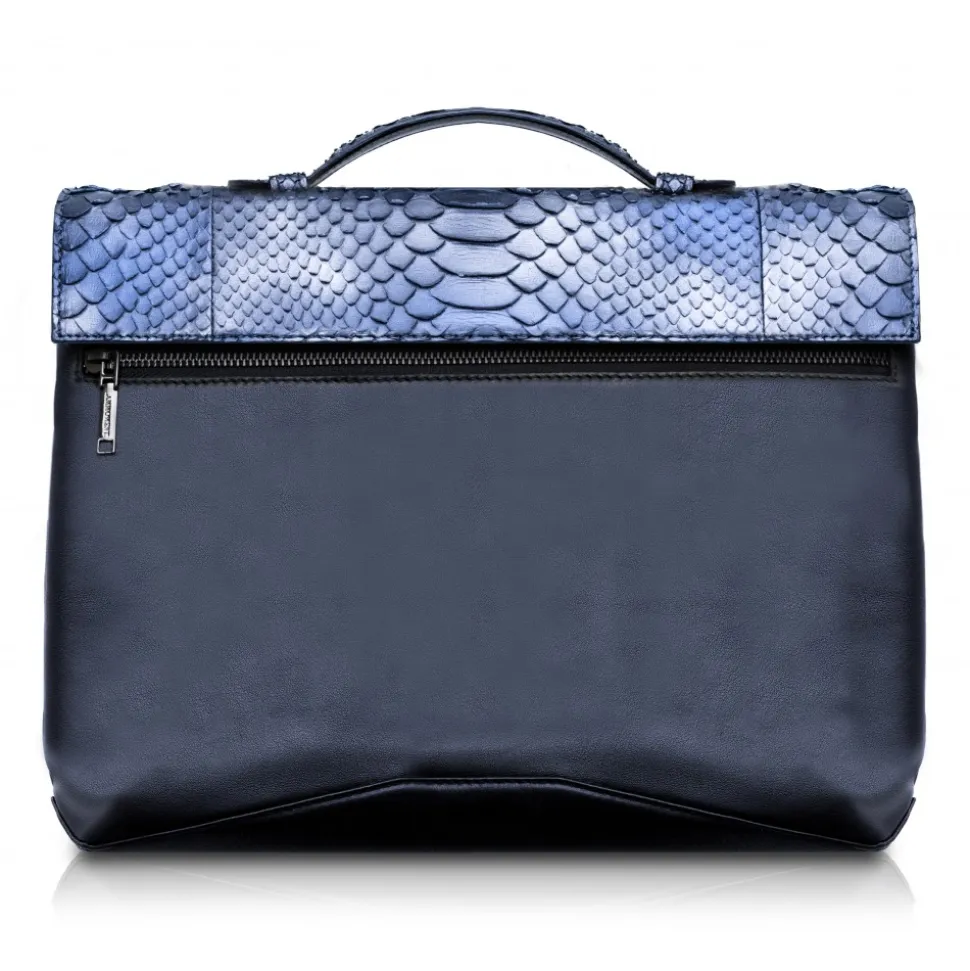 Handmade leather Orion briefcase in python and cowhide leather lining made in Italy.