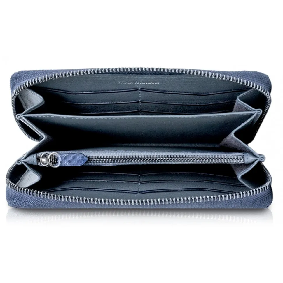 Handmade long zipper wallet in python and cowhide leather lining made in Italy.