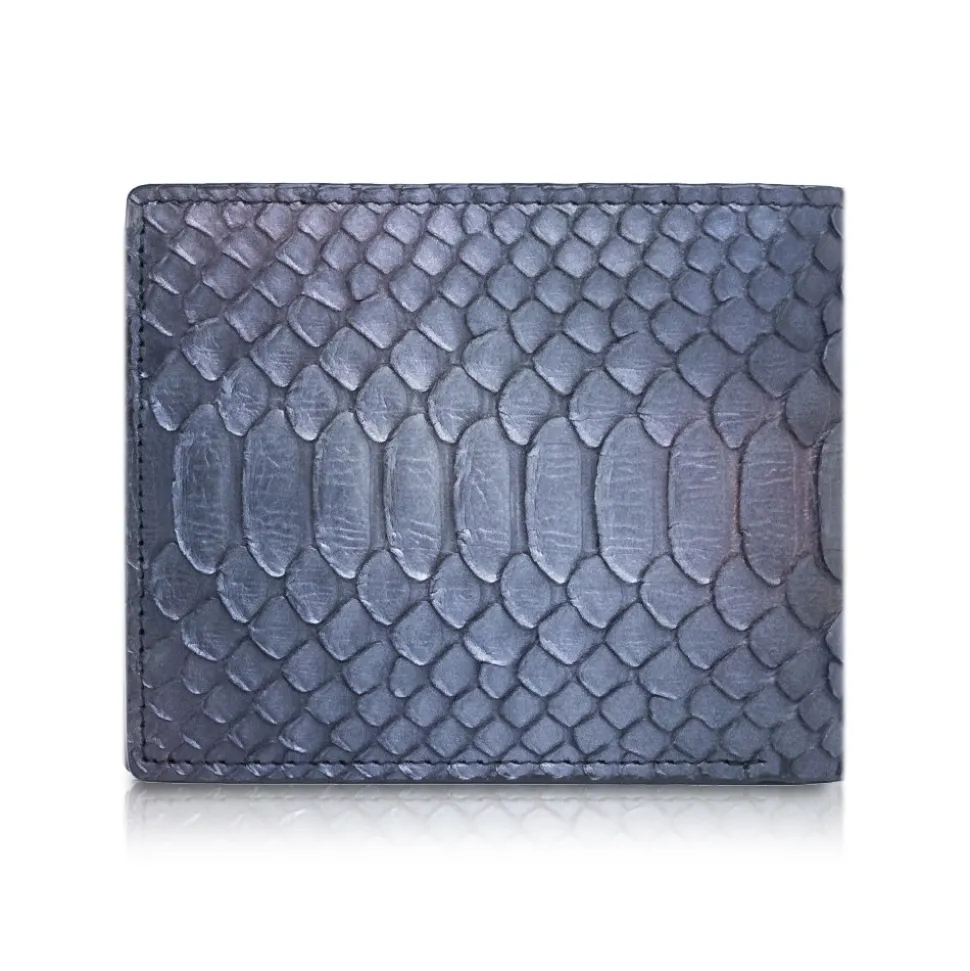 Handmade bifold wallet in python and cowhide leather lining made in Italy.