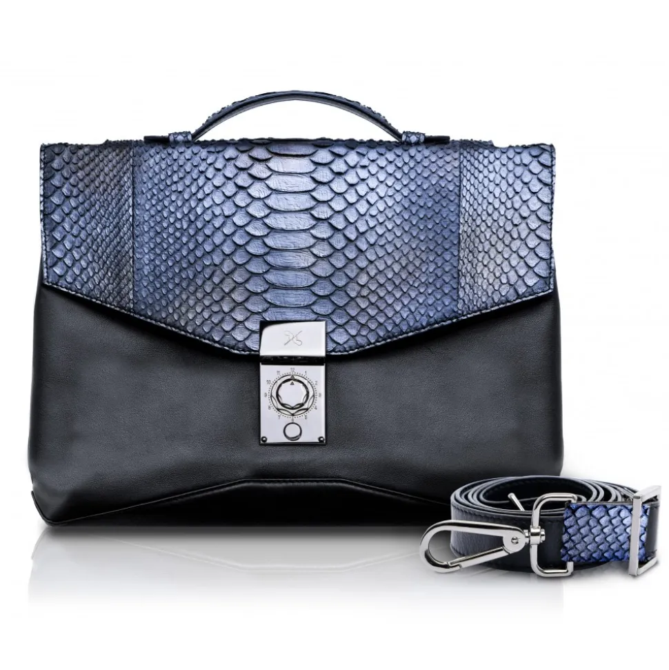 Handmade leather Orion briefcase in python and cowhide leather lining made in Italy.