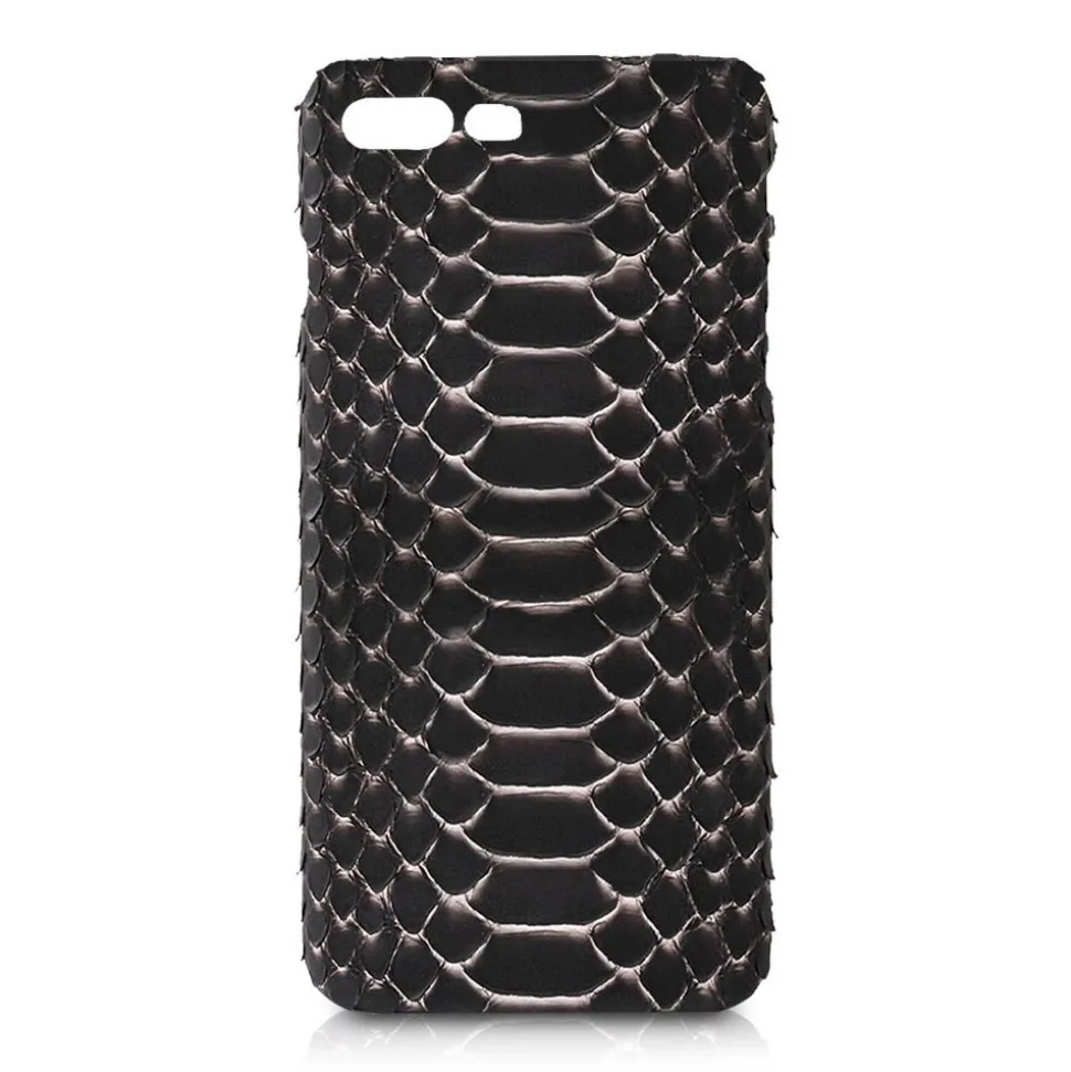 Handmade iPhone cover in python leather made in Italy. The python skin is beautifully tinted in shades of metallic rose gold at the rim of the python scales.