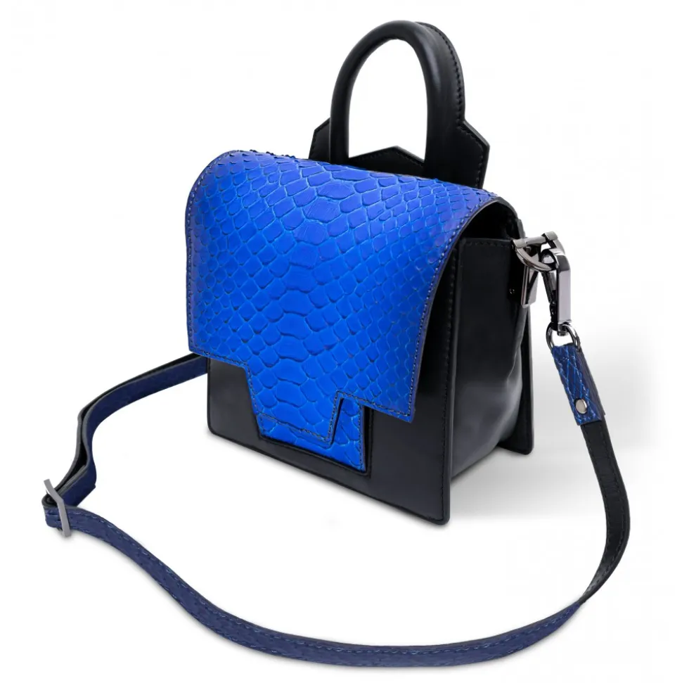 Handmade leather Lexi crossbody bag in python and cowhide leather lining made in Italy.