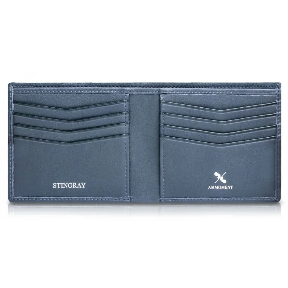 Handmade bifold wallet in stingray and cowhide leather lining made in Italy.