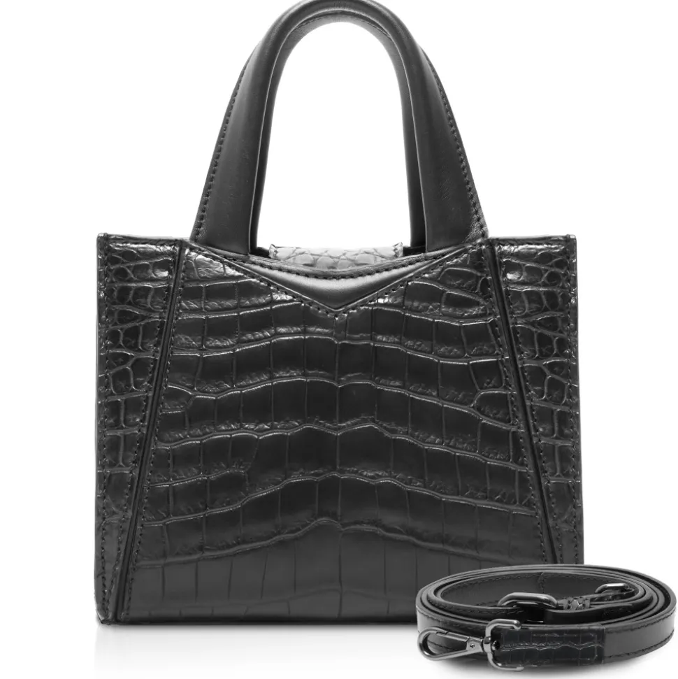 Small Vesper Leather Bag Large in Crocodile – Black