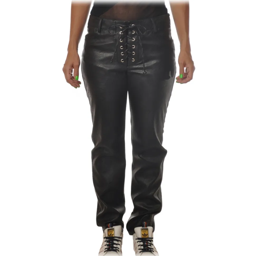Aniye By – Faux Leather Pants with Tie Detail – Black – Pants – Made in Italy – Luxury Exclusive Collection