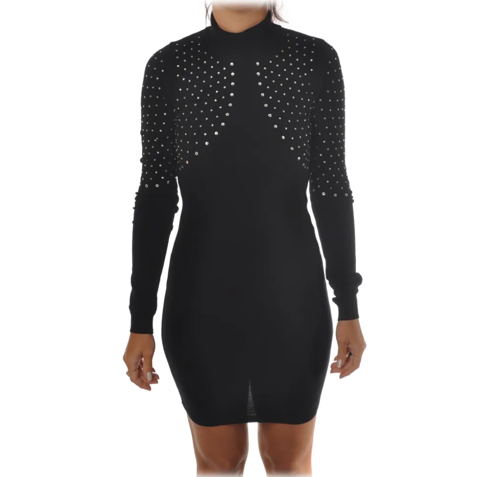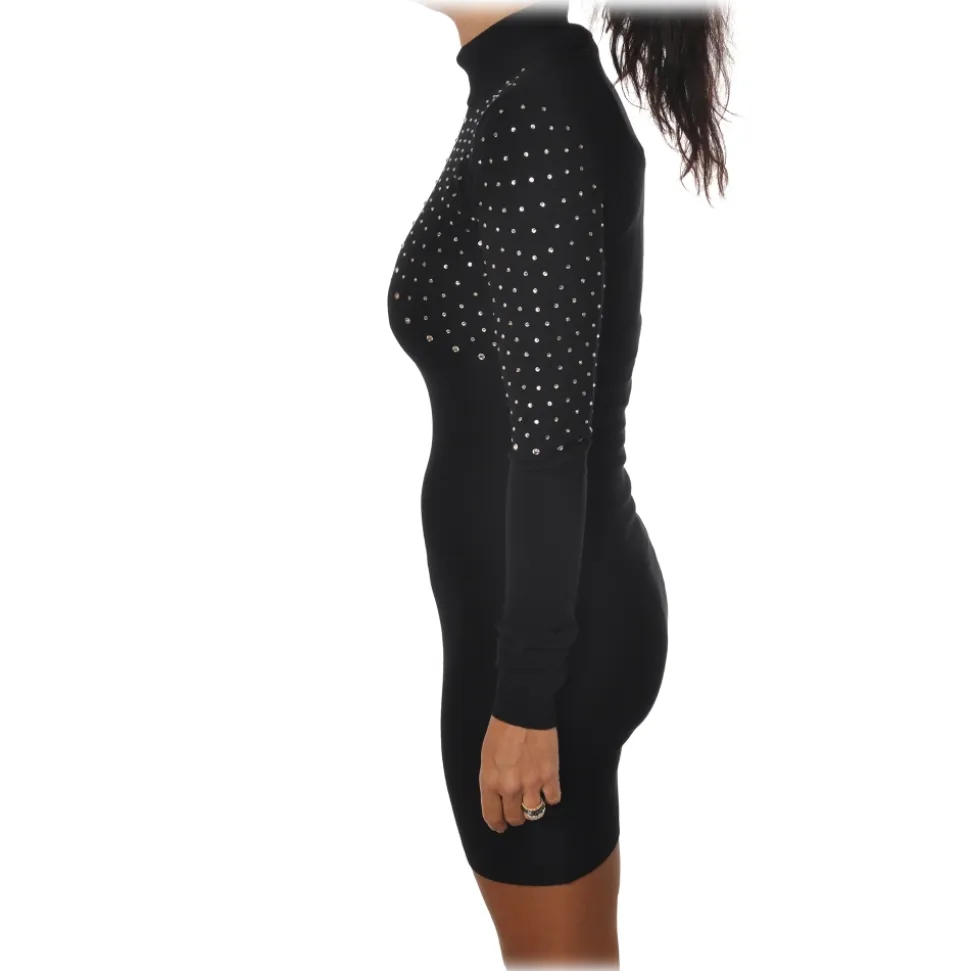 Aniye By – Short Dress with High Neck and Rhinestones – Black – Dress – Made in Italy – Luxury Exclusive Collection