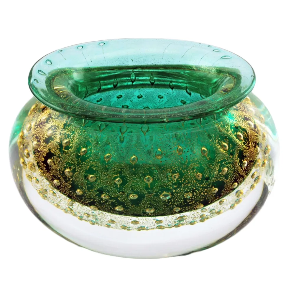 Ars Cenedese Murano – Bollinato Bown 24k Gold – Green – Handcrafted Venetian Vase Handmade by Venetian Glassmasters – High Quality Luxury