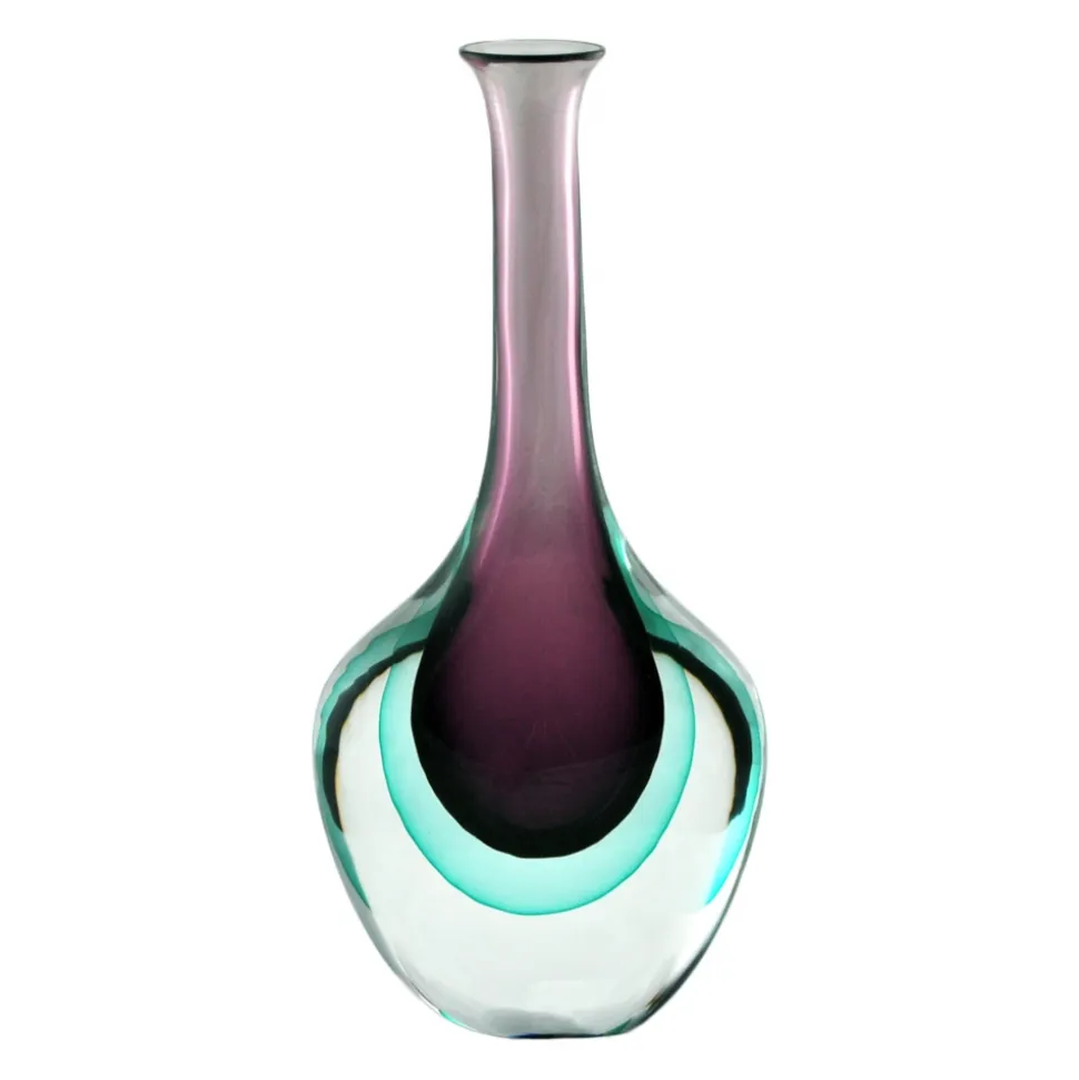 Ars Cenedese Murano – Sommerso Bottle – Amethyst – Handcrafted Venetian Vase Handmade by Venetian Glassmasters – High Quality Luxury