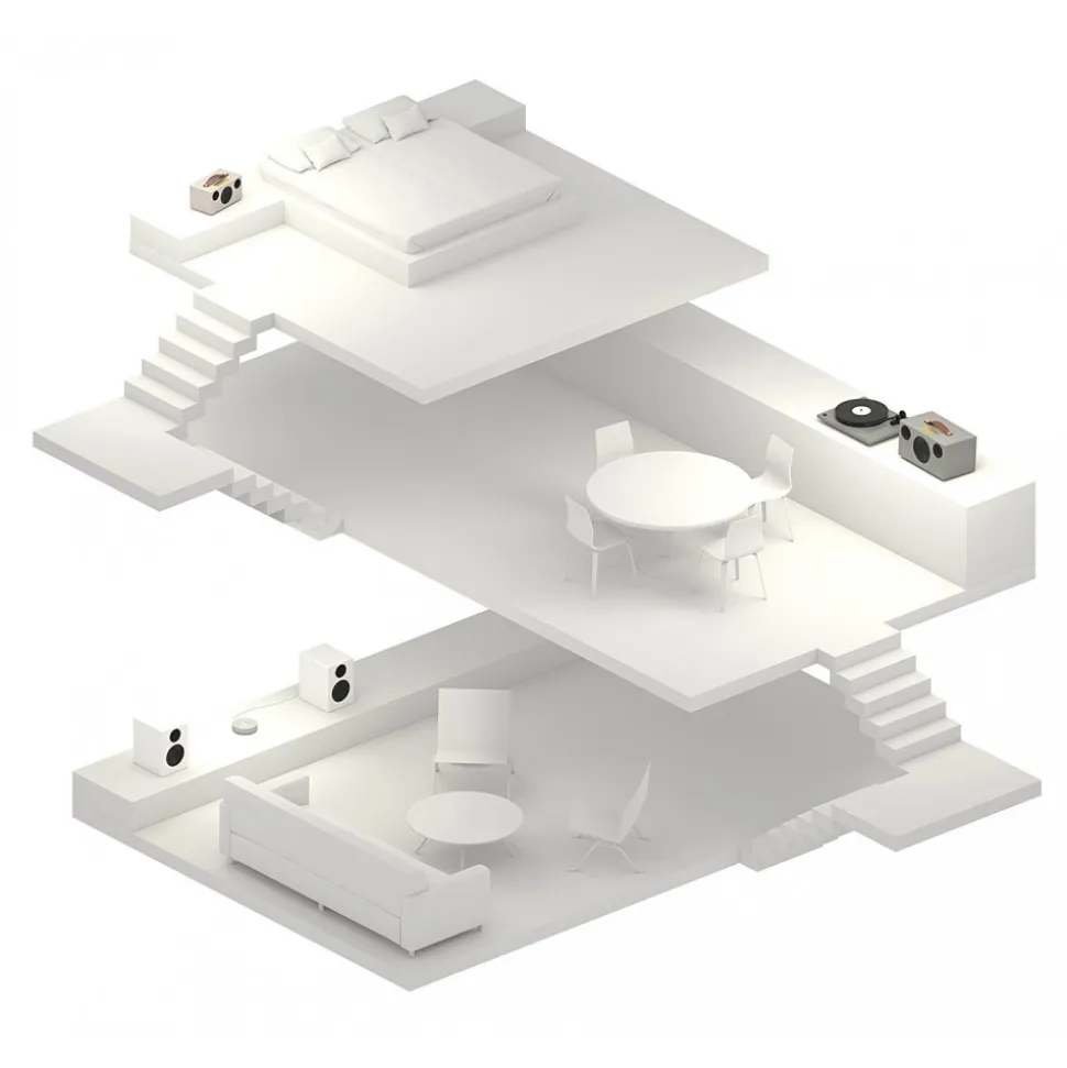 Have a speaker in every room and play to one or all at the same time. Everybody can play their personal music on which ever speaker they want. Play from internet streaming services, from a computer or NAS in your network, or music on your phone. All controlled by the App Of Simplicity.