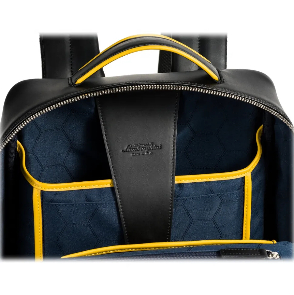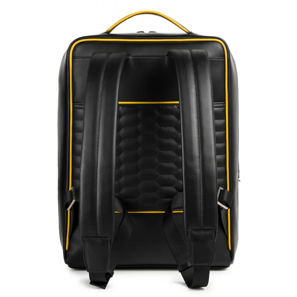 The Automobili Lamborghini backpack belongs to the new exclusive Lamborghini collection. Exclusive artifact handmade in Italy and entirely created by skilled Italian craftsmen, it was created using the same materials as Lamborghini super sports cars.