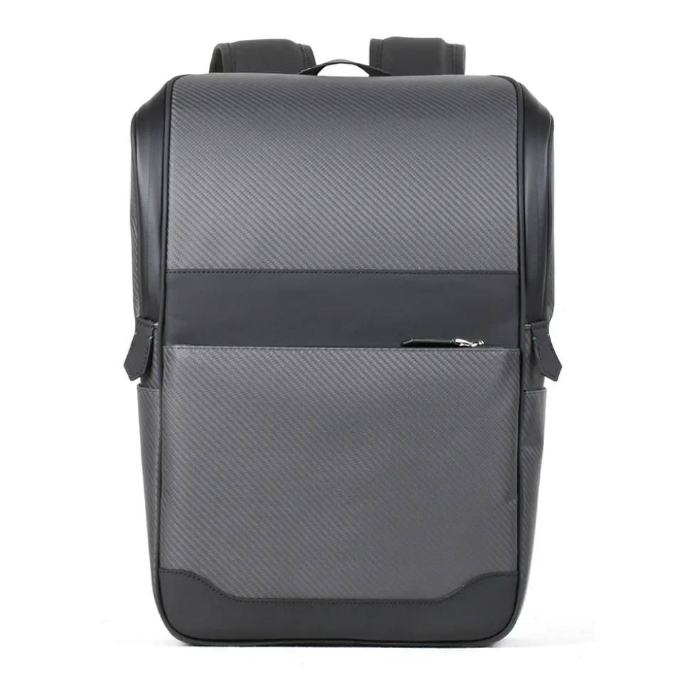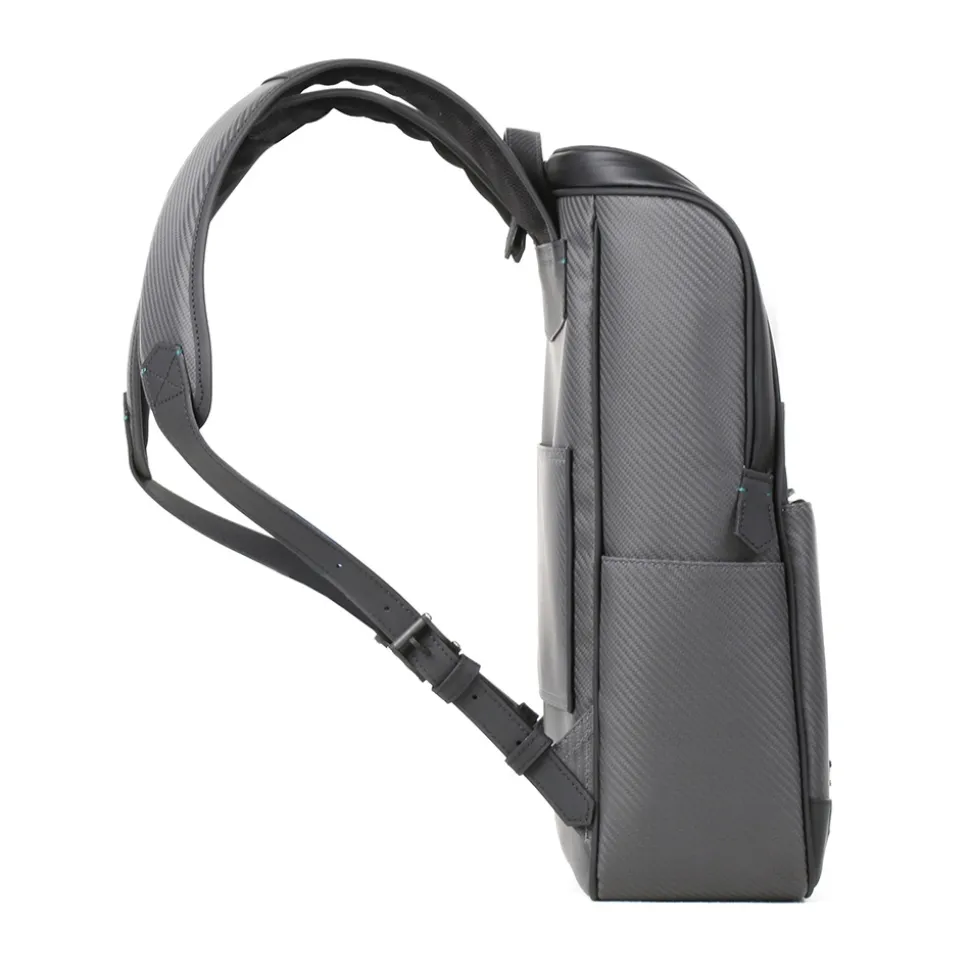 Avvenice Advance S Backpack in carbon fiber and caved leather. Perfect for those looking for elegance and practicality, the Advance backpack in soft carbon fiber wonderfully combines style and versatility. The model features unique distinctive details and a front pocket with a water resistant closure.