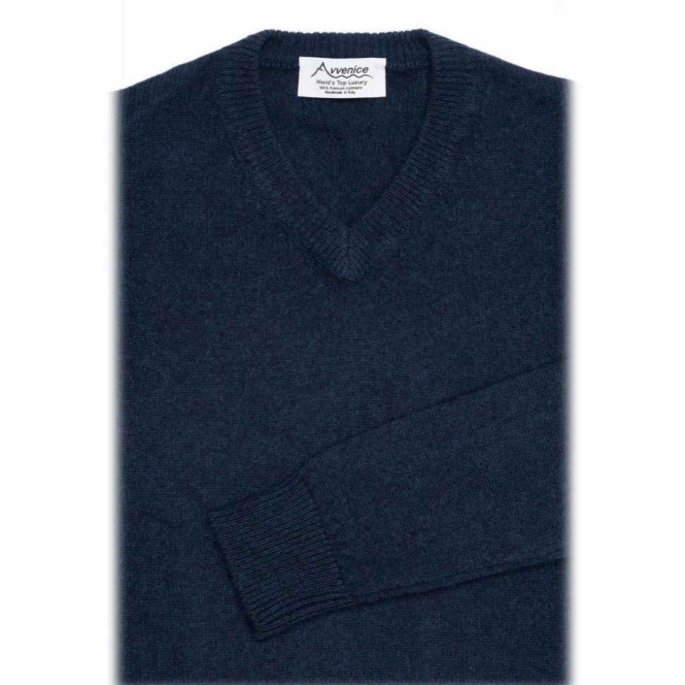 Avvenice – Athus – Man Loro Piana Cashmere V-Neck Sweater – Blue – Knitwear – Luxury Exclusive Collection