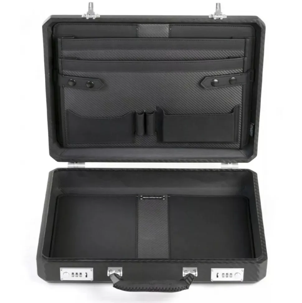 Document case with organizer, accessory case in carbon fiber and solid aluminum locks.