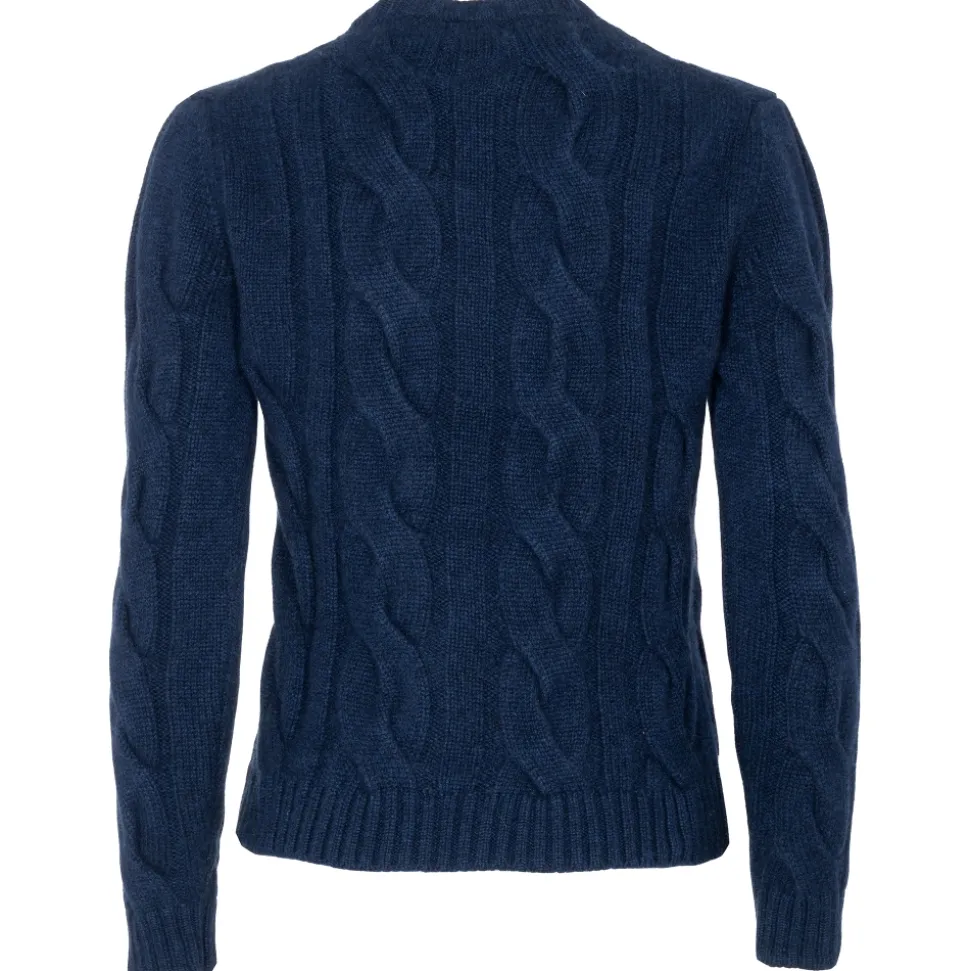 Short crew neck at the waist in fine cashmere yarn, characterized by a soft and enveloping fit. The weave is embellished with an extremely soft and fluffy pattern of stitches to enhance the natural lightness of cashmere.