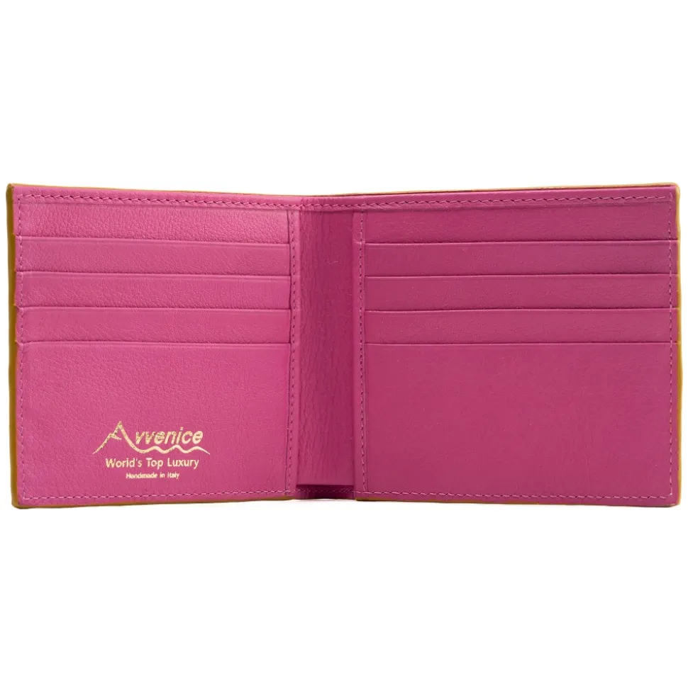 Avvenice –Â Premium Leather Wallet –Â Yellow Fuchsia – Handmade in Italy – Exclusive Luxury Collection