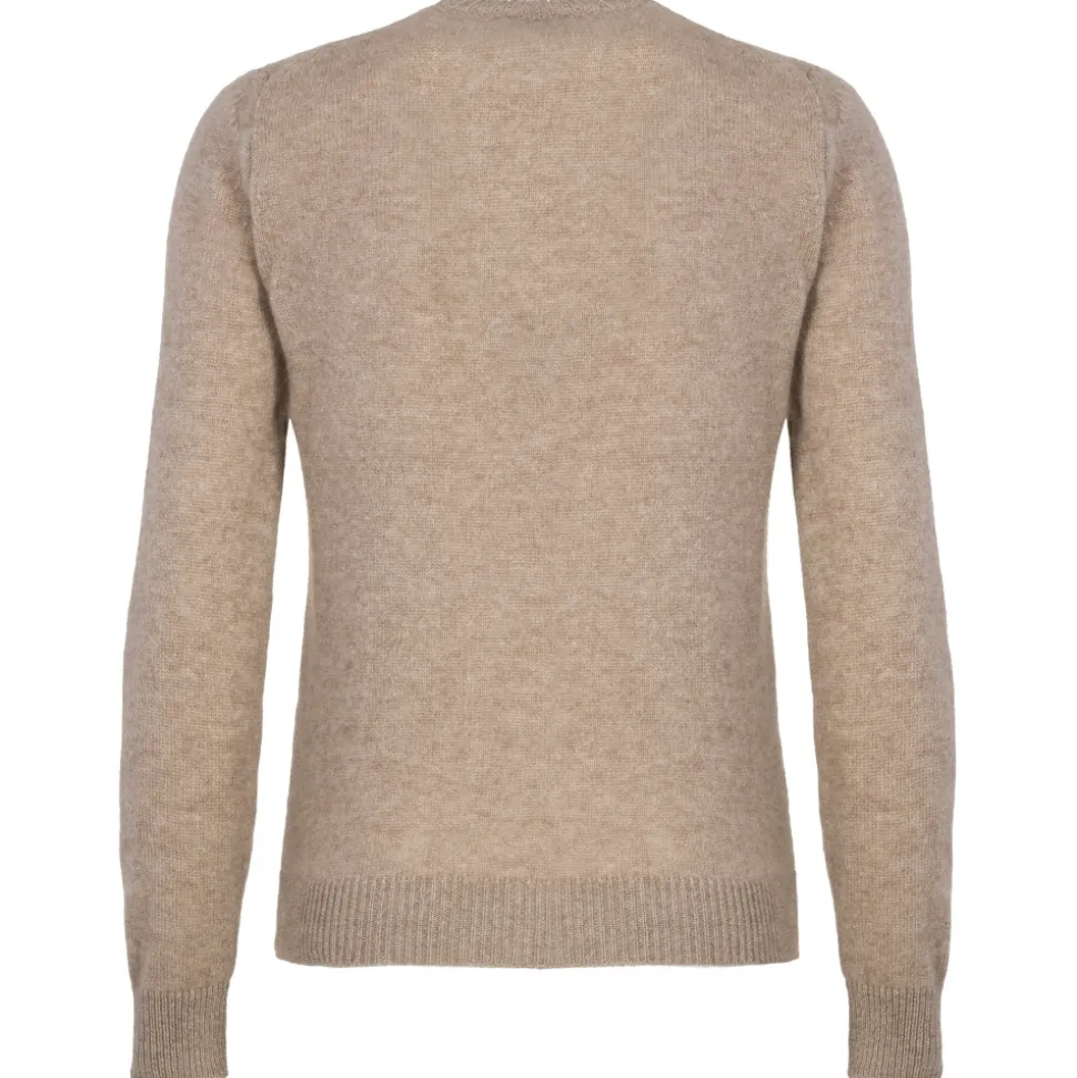 Crew neck sweater in fine cashmere yarn, characterized by a soft and enveloping fit. The weave is embellished with an extremely soft and fluffy pattern of stitches to enhance the natural lightness of cashmere.