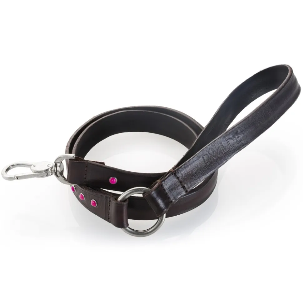 CABO Pink Leash | Composition: Genuine leather decorated with pink cabochons. Silver or antique gold hardware.