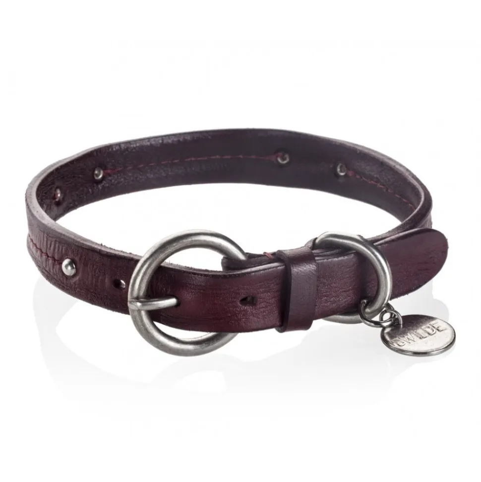 MILO Collar | Composition: Genuine leather decorated with studs. B.WILDE name tag. Personalised on request. Silver or antique gold hardware.