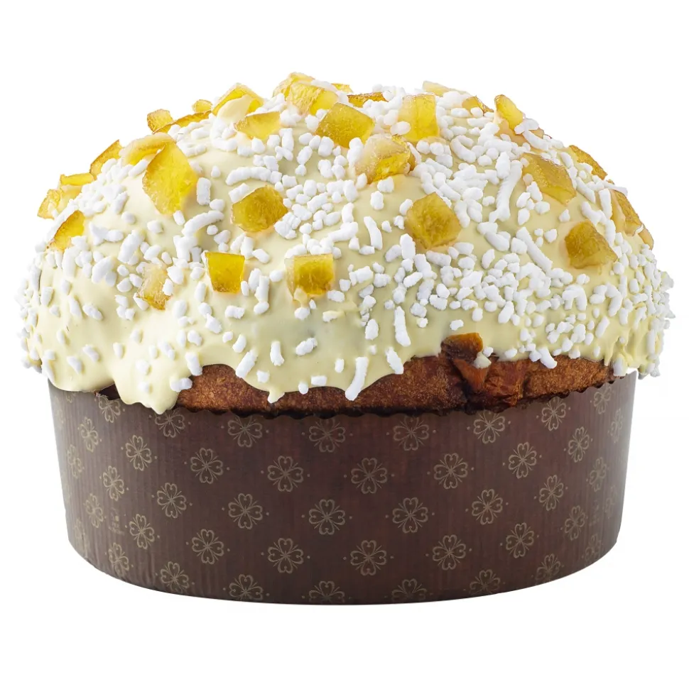 Sicilian Lemons filled with 200 g of lemon flavored cream, covered with white chocolate, candied peel of Sicilian lemons and grains sugar, has a soft dough, delicate and tasty enriched inside from candied lemon cubes.