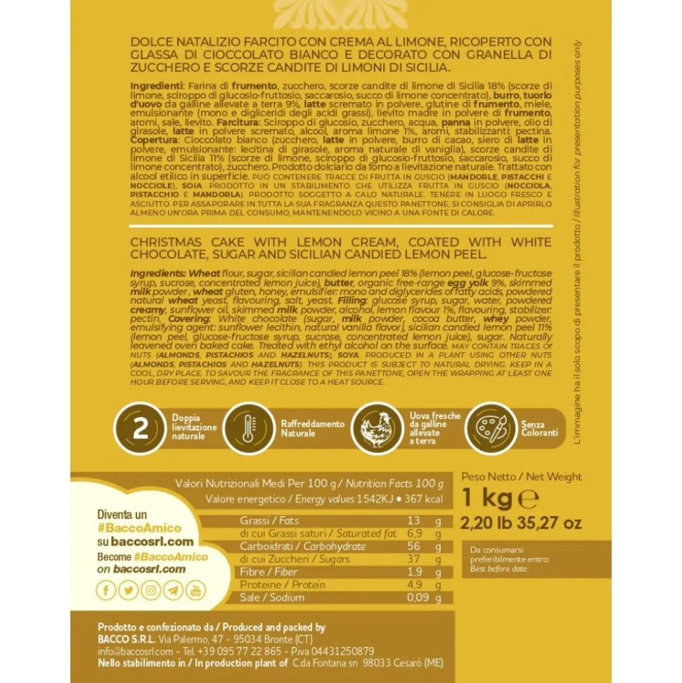 Bacco – Tipicità al Pistacchio – New Elite Line – PanBacco Elitè with Sicilian Lemons – Artisan Panettone – 1000 g