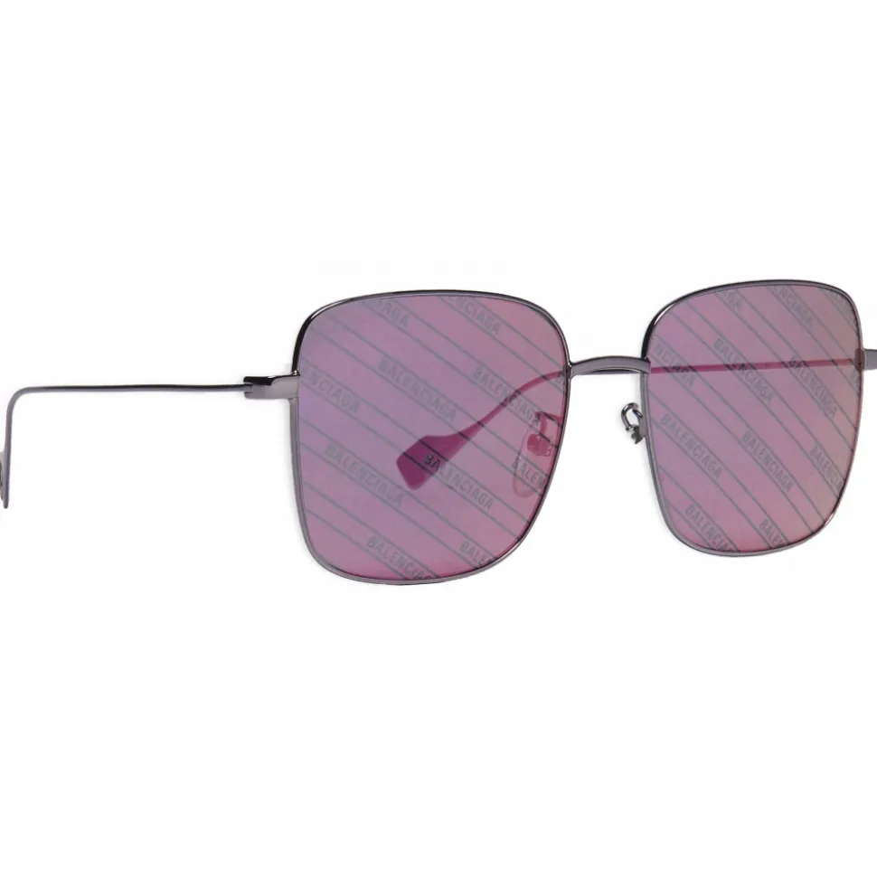 Ghost Square sunglasses in dark silver metal with pink lenses with allover diagonal logo