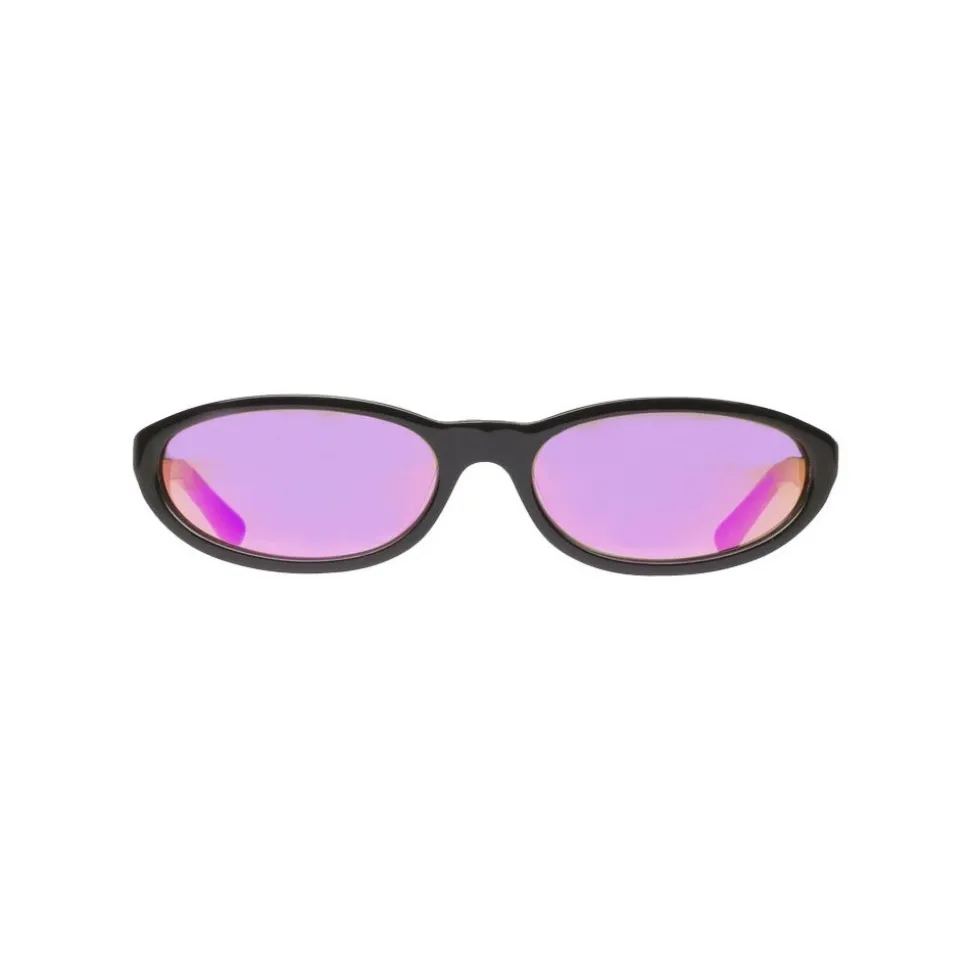 Neo Round sunglasses in bright black acetate with purple lenses.