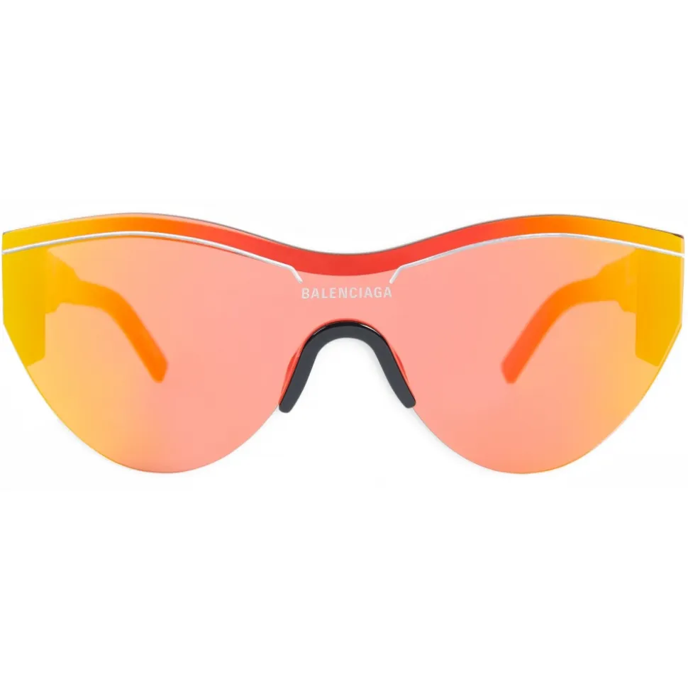 Front is made of a single lens with an enamel stripe and Balenciaga logo lasered across the top