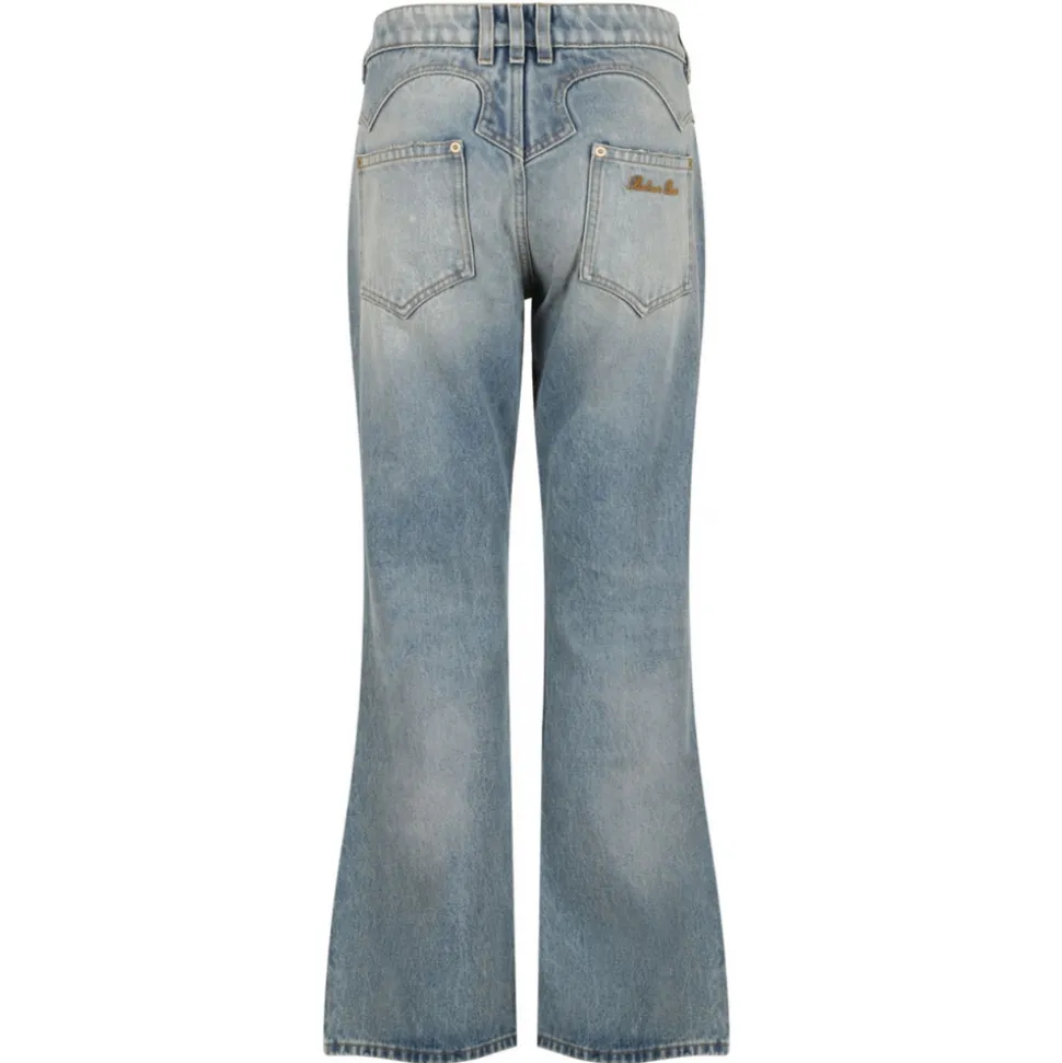 Denim Jeans Denim, low waist in vintage faded denim, closure with zip and gold-colored metal button, classic five pockets and belt loops. Logo embroidery on the back. Regular fit.